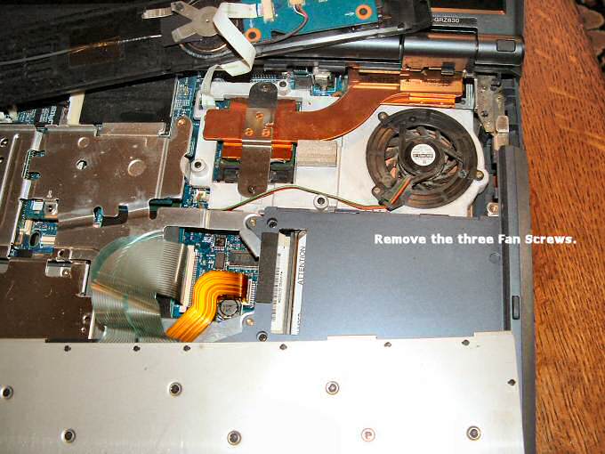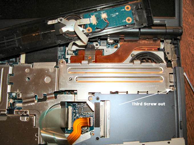 Cleaning a Sony VAIO GRZ-630 Laptop Computer (page-3). Assuming that the VAIO's keyboard was neatly flipped out of the way, take out the screw mark third screw out (see next picture) and take off the cover plate on the right side of the opening.